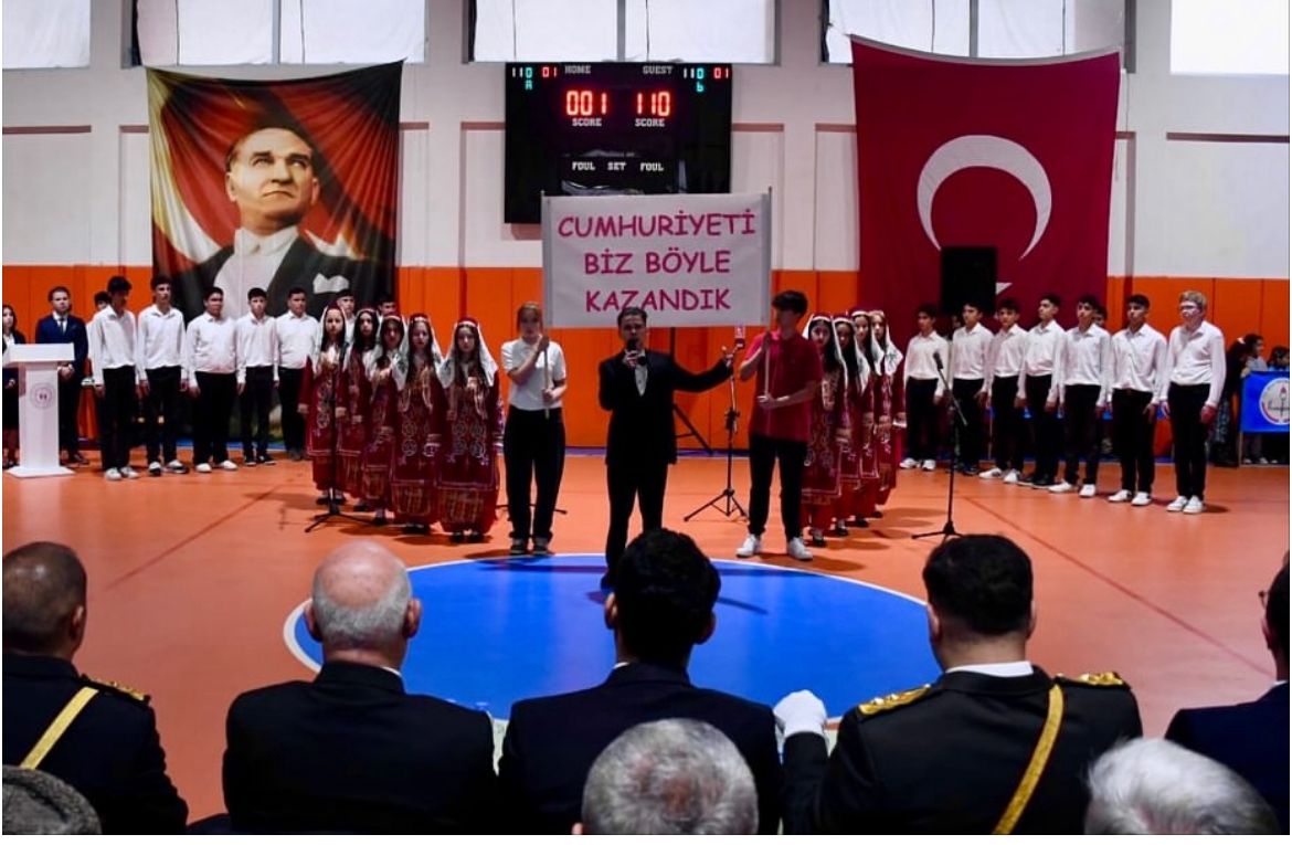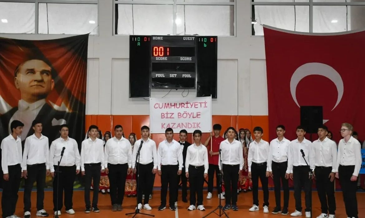 Cumhuriyetimizin 102. kuruluş yıl dönümü münasebetiyle, İlçe Milli Eğitim Müdürlüğümüz koordinesinde hazırlanan kutlama programı Fen Lisesi Kapalı Spor Salonu'nda büyük bir coşku ve gururla gerçekleştirildi.
