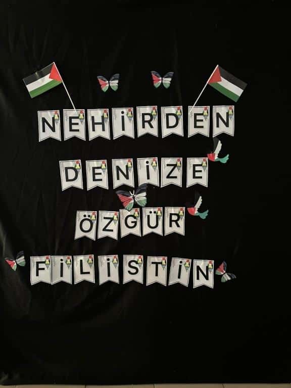Etkinlikler kapsamında öğrencilerimiz; savaşa, zulme ve hukuksuzluğa karşı durmanın, barışın ve adaletin önemine dikkat çektiler. Programlarda yapılan konuşmalar, şiirler, afiş çalışmaları ve sunumlarla, Filistin halkının yaşadığı insanlık dramına farkındalık oluşturuldu.