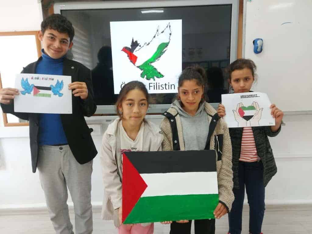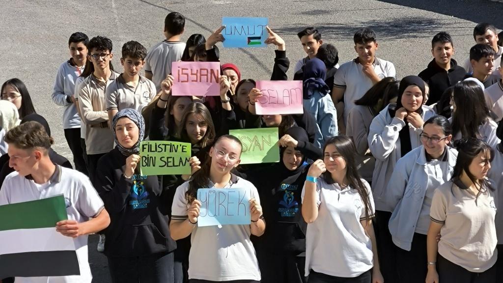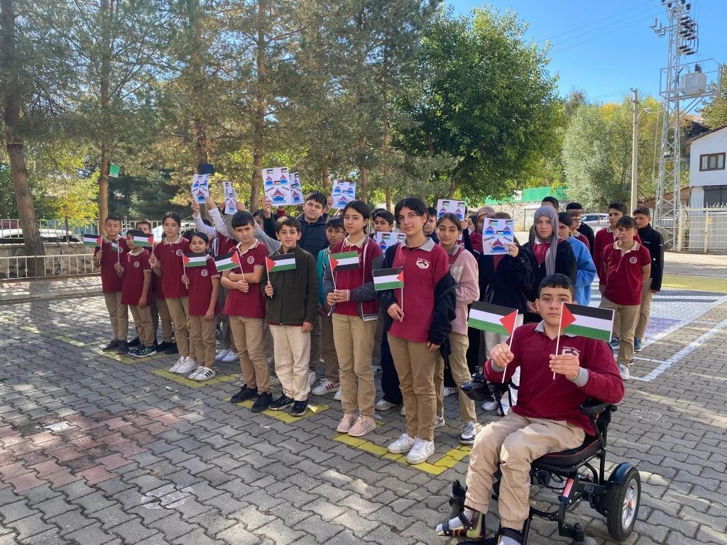 Türkiye genelinde olduğu gibi ilçemiz okullarında da aynı duygularla, "Yanındayız Filistin!" çağrısı yankılandı.
